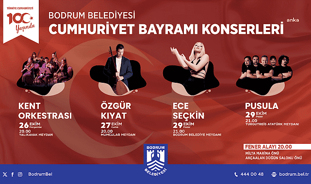 Bodrum'da Cumhuriyet'in ilan edilişinin 100’üncü yılı Bodrum Belediyesi’nin hazırladığı etkinliklerle kutlanacak. Yarımada genelinde düzenlenecek olan etkinliklerle Cumhuriyet coşkusu Bodrum’a yayılacak.