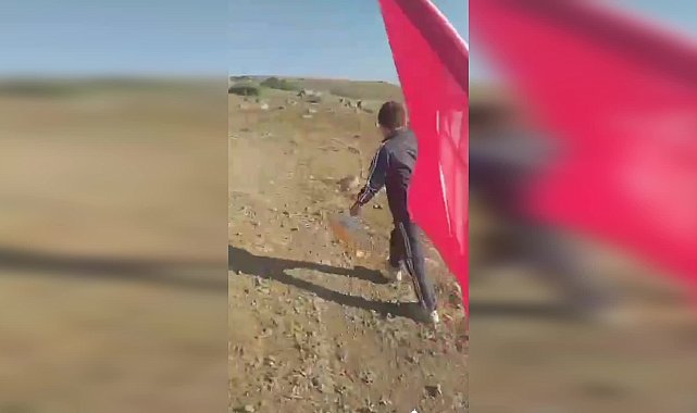 (OSMANİYE) - Gezmek için gittiği Osmaniye’nin Zorkun Yaylası 2099 rakımlı Keldaz mevkisinde dalgalanan Türk bayrağının eskidiğini fark eden 11 yaşındaki Tarık Yılmaz, bayrağı yenisiyle değiştirdi.