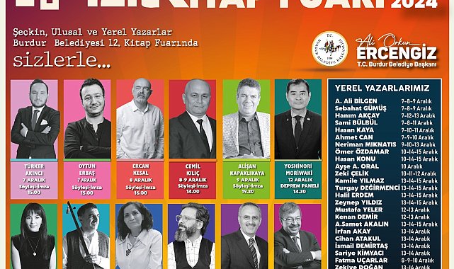 (BURDUR)- Burdur Belediyesi tarafından düzenlenen 12’nci Kitap Fuarı, 7 Aralık’ta Belediye Konferans ve Sergi Salonunda açılıyor. Belediye Başkanı Ali Orkun Ercengiz, "Tüm hemşerilerimizi, kitaplarla ve değerli yazarlarımızla buluşmaya davet ediyorum" dedi.Burdur Belediyesi tarafından düzenlenen 12’nci Kitap Fuarı 7 Aralık’ta başlıyor. 7’den 70’e tüm kitapseverlere hitap edecek olan fuarda bu yıl aralarında Türker Akıncı, Oytun Erbaş, Ercan Kesal, Cemil Kılıç, Alişan Kapaklıkaya, Yoshinori Moriwaki, Erdal Erzincan, Saygı Öztürk, Hayati İnanç gibi isimler fuara katılacak. Ayrıca, müzikseverler için Erdal Erzincan ve Kıymet Erzincan konser ve söyleşi gerçekleştirecek. Yerel yazarların da katılacağı fuar, kültür ve edebiyat dünyasına katkı sağlayacak. "Tüm hemşerilerimizi, kitaplarla ve değerli yazarlarımızla buluşmaya davet ediyorum"Kitap fuarıyla ilgili açıklama yapan Belediye Başkanı Ali Orkun Ercengiz, "Bu yıl 12'nci kez düzenleyeceğimiz kitap fuarımızda, geçmiş yıllarda olduğu gibi, gençlerimizi, çocuklarımızı ve kitap sevgisini benimsemiş tüm vatandaşlarımızı edebiyatla buluşturacağız. Herkesin ilgiyle katılacağı bir etkinlik olacağına inanıyoruz. Tüm hemşerilerimizi, kitaplarla ve değerli yazarlarımızla buluşmaya davet ediyorum" dedi.7 Aralık Cumartesi günü açılışı yapılacak olan 12'nci Kitap Fuarı 15 Aralık Pazar gününe kadar 10.30-21.00 saatleri arasında ziyarete açık olacak.