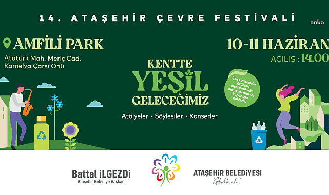 Ataşehir Belediyesi 14. Çevre Festivali’ni “Kentte Yeşil Geleceğimiz” temasıyla 10-11 Haziran günlerinde Ataşehir Amfili Park’ta gerçekleştirecek.Festivalde doğaya emek veren sivil toplum kuruluşları, dernek, topluluklar, çevre aktivistleri ve gençler stantları ile yer alacak. 7'den 70'e her yaştan katılımcıya açık olan festivalde, atölyeler, söyleşiler, doğa çalışmaları ve konser gibi birçok etkinlik düzenlenecek.