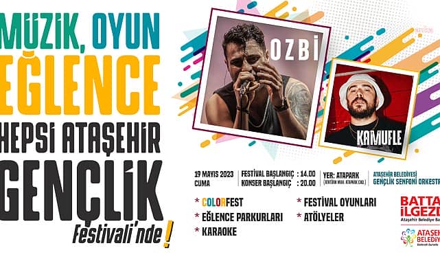 19 Mayıs Atatürk’ü Anma, Gençlik ve Spor Bayramı, Ataşehir’de Gençlik Festivali ile kutlanacak. Gençler için özel olarak hazırlanan program kapsamında; festival oyunlarından atölyelere, eğlence parkurlarından renkli sahne gösterilerine kadar birçok etkinlik yapılacak. Renkli görüntülere sahne olacak festivalde Ozbi ve Kamufle sahne alacak.