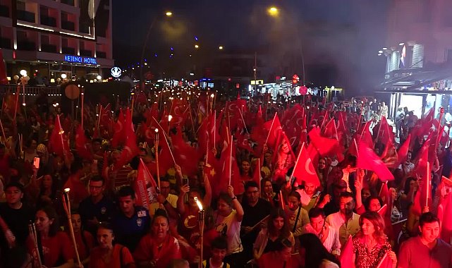 (MUĞLA)- 19 Mayıs Atatürk’ü Anma, Gençlik ve Spor Bayramı, Marmaris’te coşkuyla kutlandı.Marmaris Belediyesi'nin 19 Mayıs’ta düzenlediği fener alayında binlerce vatandaş bayram coşkusuyla bir araya geldi. En çok eğlenenler ise gençler oldu.Marmaris Belediye Başkanı Acar Ünlü, Marmaris Kaymakamı Nurullah Kaya, Aksaz Deniz Üs Komutanı Tuğamiral Neslim Eski’nin de katıldığı fener alayında vatandaşlar ellerinde bayraklarla yürüdü. Ketenci Otel önünde başlayan yürüyüş marşlar ve alkışlarla 19 Mayıs Gençlik Meydanı’na kadar devam etti.200 metre uzunluğunda Türk Byrağı'nın açıldığı fener alayına vatandaşlar da evlerinin balkonlarından ve camlardan alkışlarla eşlik etti. Yaklaşık 45 dakika süren yürüyüş sonrasında Marmaris’in genç gruplarından Karşı Sokak’ın konseriyle bayram coşkusu devam etti. DJ Muzo’nun da sahne aldığı gece hep bir ağızdan söylenen İzmir Marşı ile sona erdi.