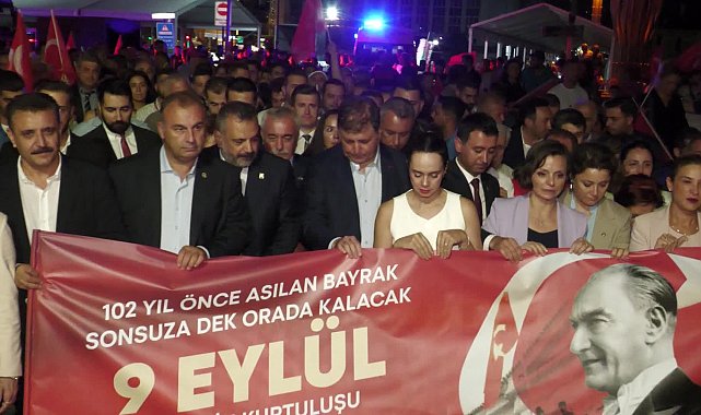 (İZMİR) – 9 Eylül İzmir’in kurtuluşunun 102. Yılı kutlamaları, düzenlenen Fener Alayı ile taçlandırıldı. 350 metrelik Türk Bayrağı’nın Kordon boyunu doldurduğu yürüyüşte İzmirliler kurtuluş coşkusunu yaşadı.Kurtuluş Savaşı’nın zaferle taçlandığı gün olan 9 Eylül İzmir’in kurtuluşunun 102. Yılı kutlamaları Fener Alayı ile devam etti.Sabah 09.00’da “102. Yıl Zafer Yürüyüşü” ile başlayan ve tüm gün süren kutlamalar, Cumhuriyet Meydanı’ndan Lozan Meydanı’na yapılan Fener Alayı yürüyüşü coşkusu ile sona erdi.Yürüyüşe; İzmir Büyükşehir Belediye Başkanı Cemil Tugay, CHP İzmir İl Başkanı Şenol Aslanoğlu, CHP İzmir Milletvekili Ednan Arslan ve ilçe belediye başkanları katıldı.Siyasiler ve yerel yöneticiler, 9 Eylül için yakılan meşaleler eşliğinde vatandaşlarla birlikte yürüyerek zafer coşkusunu birlikte yaşadı.Yüzlerce İzmirli’nin 350 metrelik Türk Bayrağı’nın taşındığı Fener Alayı yürüyüşünde İzmir sokakları kırmızı-beyaza boyandı.İzmir’in Kurtuluş’unun 102. yılı kutlamalarındaki coşku, Kültürpark’ta Haluk Levent konseriyle doruğa çıktı.