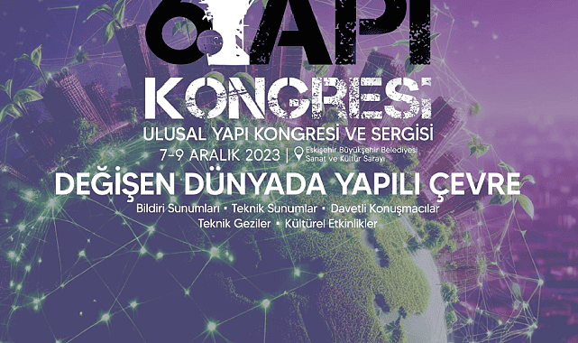 Eskişehir Büyükşehir Belediyesi’nin ev sahipliğinde, TMMOB Mimarlar Odası Ankara, Antalya ve Eskişehir Şubelerinin iş birliğiyle düzenlenecek olan “Değişen Dünyada Yapılı Çevre” başlıklı 6. Ulusal Yapı Kongresi ve Sergisi, 7-9 Aralık 2023 tarihleri arasında alanında uzman isimleri Eskişehir’de buluşturacak.