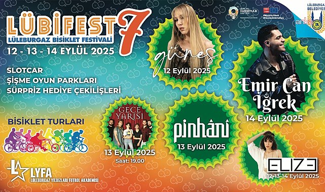 (KIRKLARELİ) - 7. Lüleburgaz Bisiklet Festivali (LÜBİFEST), bu yıl 12-14 Eylül 2025 tarihleri arasında gerçekleştirilecek. Lüleburgaz Belediyesi'nin bu yıl yedincisini düzenleyeceği Lüleburgaz Bisiklet Festivali, 12 Eylül Cuma günü saat 18.30’da Kongre Meydanı’nda toplanılmasıyla başlayacak. Aynı gün saat 19.00’da kortejin hareket etmesiyle renkli görüntülere sahne olacak festival, Lüleburgaz Yıldızları Futbol Akademisi (LYFA) Festival Alanı’nda açılış etkinlikleriyle devam edecek.Açılış günü Elize’nin DJ performansı ve Güneş konseriyle müzik dolu bir akşam yaşanacak.Festivalin ikinci günü de 13 Eylül Cumartesi saat 10.00’da gerçekleştirilecek bisiklet turu ile başlayacak. Gün boyunca LYFA Festival Alanı’nda çadır faaliyetleri, rekreatif etkinlikler ve slot car yarışları katılımcıları beklerken, saat 15.00’te sürpriz hediye çekilişi yapılacak. Akşam saatlerinde ise müzik şöleni Grup Gece Yarısı konseriyle başlayacak, ardından DJ Elize performansı ve Pinhani konseriyle devam edecek.Festivalin son günü olan 14 Eylül Pazar günü ise sabah saat 10.00’da LYFA’dan başlayacak Lüleburgaz rotalı bisiklet turuyla hareketli bir gün daha yaşanacak. Çadır faaliyetleri, rekreatif etkinlikler ve sürpriz hediye çekilişlerinin ardından akşam DJ Elize sahne alacak.Festival, gençlerin büyük ilgiyle beklediği Emir Can İğrek konseriyle son bulacak.