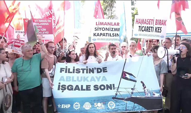 (ANKARA) - TİP, SOL Parti, EMEP, EHP VE KESK üyeleri, ''Filistin'de ablukaya, işgale son'' sloganıyla ABD Büyükelçiliği önünde açıklama yaptı. EMEK Partisi Gaziantep Milletvekili Sevda Karaca, "Mersin Limanı’nından sessizce geçen Vela gemisi açık bir biçimde ortaya koyuyor. Kim Filistin halkının yanındadır, kim katillerin sofrasındadır açık seçik ortada. Bu gerçeği birlikte bir kere daha haykırmaya geldik buraya. Bu ülkenin limanlarını Pentagon’un lojistik limanları gibi kullanmaya utanmayıp, hamaset ile gözyaşı dökenlere bir çift sözümüz var. Filistin’in yanındayız masalı anlatmayın artık bu halka. Sizin Filistin sevdanız, diplomasi koridorlarında başlar ama ihale dosyalarında biter gayet iyi biliyoruz. Sizin kardeşlik dediğiniz şey, Tel Aviv Borsası’ndaki kur kardeşliğidir" ifadelerini kullandı.İsrail'in Gazze Şeridi’ne uyguladığı ablukayı delerek insani yardım ulaştırmayı amaçlayan Özgürlük Filosu Koalisyonu’na (Freedom Flotilla Coalition - FFC) ait "Madleen" adlı yelkenlinin İsrail tarafından alıkonulması ve İsrail’e silah malzemesi taşıyan "Vela" adlı geminin Mersin Limanı’na uğrayarak, Aşdod Limanı’na doğru yola çıkması, ABD'nin Ankara Büyükelçiliği önünde protesto edildi.Türkiye İşçi Partisi (TİP), SOL Parti, Emek Partisi(EMEP), Emekçi Hareket Partisi (EHP) ve Kamu Emekçileri Konfederasyonu (KESK) üyeleri, ''Filistin'de ablukaya, işgale son'' sloganıyla ABD'nin Çukurambar’da bulunan Büyükelçiliği önünde basın açıklaması yaptı. "Gazze halkını vuran ve tüm bölge halklarını tehdit eden barbarlığa iktidar da ortaktır"KESK Ankara Şubeler Platformu Dönem Sözcüsü Mehmet Aydoğdu tarafından yapılan açıklamada şu ifadelere yer verildi:"İnsani yardım ulaştırmak isteyen sivil inisiyatifler bile hedef alınıyor. 9 Haziran’da Gazze’ye yardım taşıyan Madleen gemisine, uluslararası sularda İsrail tarafından el konuldu. Bu gemide silah yoktu, asker yoktu. İsrail, bu saldırıyla yalnızca yardım malzemelerini değil, aynı zamanda Filistin halkına uzanan uluslararası dayanışma elini hedef aldı. Madleen’e yapılan saldırı, açık bir savaş suçudur. Aynı gün İsrail Askeri Endüstrileri’ne (IMI) teslim etmek üzere asgari 15 konteyner çelik taşıdığı bilinen Vela adlı gemi Mersin kıyılarına yanaştı. Bir yanda yardım taşıyan sivil gemiler engellenirken, öte yanda İsrail’e ticaret akışı devam ediyor. İktidar, yıllardır Filistin halkının dostu olduğunu iddia etmekte; miting meydanlarında 'kardeşlik', 'dayanışma' gibi söylemleri bolca kullanmaktadır. Ancak gerçekler ortadadır: Filistin halkı açlıktan ölürken İsrail ile sürdürülen ticari ve diplomatik ilişkiler, bu söylemlerin içinin ne kadar boş olduğunu ortaya koymaktadır. İşte saray iktidarının ve tek adamın iki yüzlü politikaları bu kadar açıktır. Gazze’de soykırım varken ve insani yardımlar dahi alıkonuluyorken ülkemizin karasuları barbar İsrail ordusuna silah malzemeleri taşıyan gemilere açılıyor. Gazze halkını vuran ve tüm bölge halklarını tehdit eden barbarlığa iktidar da ortaktır""Dünyanın gözü önünde bir halk katlediliyor"Türkiye İşçi Partisi adına Ankara İl Sekreteri tarafından yapılan açıklamada ise şunlar kaydedildi:"Bugün buradayız çünkü Gazze'de bir halk yok edilirken, bu katliamın en büyük ortağı olan, en büyük destekçisi olan Amerikan Büyükelçiliği, tam arkamızda. Gazze’de çocuklar ölüyor. Hastaneler bombalanıyor. İnsanlar açlıkla, susuzlukla,hastalıkla boğuşuyor. Dünyanın gözü önünde bir halk yok ediliyor. Ama bize hala ‘bu bir savaş değil’ diyorlar. Bu sadece bir savaş değil, düpedüz soykırım. Bu soykırımın savunucusu, sponsoru Amerika’dır. İstiyorlar ki hiçbir şey görmeyelim, söylemeyelim. Alışalım, sessiz kalalım. Fakat alışmayacağız. Dünyanın dört bir yanından Filistin’e uzanan danışma idaremizle onlara korku vermeye devame edeceğiz.”“Amerikan emperyalizmi, bu dünyanın, son çağın en büyük barbarlık örgütüdür”EMEK Partisi adına konuşan EMEK Partisi Gaziantep Milletvekili Sevda Karaca ise "Bugün bu ülkenin devrimcileri, sosyalistleri, emek örgütleri, gençleri, kadınları olarak Amerikan Büyükelçiliğinin önündeyiz" diyerek şunları söyledi:"Orta Doğu’da dökülen asıl kanın muhatabının kim olduğunu gayet iyi biliyoruz. Çok iyi biliyoruz ki Vaşington’da alınan her karar, Orta Doğu’da halkların üzerine bomba olarak yağıyor. Filistin bunun en kanlı örneklerinden bir tanesi. Sekiz aydır Filistin’de taş taş üstüne kalmadı. İnsanların açlıkla, susuzlukla, evsizlikle karşı karşıya kaldıkları yetmiyormuş gibi ‘Size bir lokma ekmek vereceğiz’ diye çağrıldıkları yerde bombalanıyorlar. Bunun adı soykırım. Bu soykırım yalnızca İsrail’in vahşi barbarlığının ürünü değil. Önünde durduğumuz Amerikan emperyalizminin kol kanat gericiliği olmasa, İsrail vahşetinin bu boyuta ulaşmayacağını gayet iyi biliyoruz. Amerikan emperyalizmi, bu dünyanın, son çağın en büyük barbarlık örgütüdür. İsrail hükümeti de bu barbarlık terörünün en büyük suç örgütüdür. Amerikan emperyalizminin gönderdiği silahlar, sağladığı güvenlik şemsiyesi, finanse ettiği füzeler yetmedi, bir de üniversitelerden gazetelere kadar Filistin’in adını yasaklayan Trump faşizmi ile de karşı karşıyayız. Bizim için bir gerçek daha var. Bu barbarlığın savunucuları, destekçileri yalnızca Batı’da değil, işte ayağımızı bastığımız bu topraklara iktidar olan AKP hükümeti de bu barbarlığın açık bir ortağı. Bu suçun ortağı. Mersin Limanı’nından sessizce geçen Vela gemisi açık bir biçimde ortaya koyuyor. Kim Filistin halkının yanındadır, kim k
