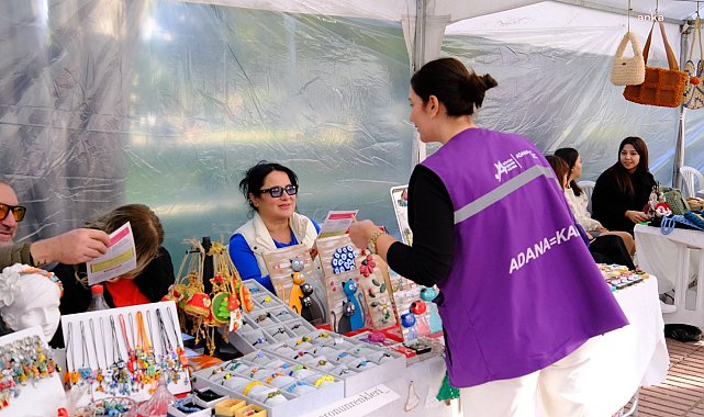 (ADANA)- Adana Büyükşehir Belediyesi tarafından her yıl düzenlenen yılbaşı konseptli 'Kadın Emeği Pazarı' bu yıl 20-21-22 Aralık 2024 tarihlerinde Atatürk Parkı Ziyapaşa Bulvarı’nda kuruldu.Adana Büyükşehir Belediyesi Kadın ve Aile Hizmetleri Dairesi Başkanlığı, kadınların ekonomik hayata katılımlarını sağlamak, ekonomik olarak güçlenmelerine olanak tanımak amacıyla "Ürettikçe Hep Güçlü" sloganıyla yılbaşı konseptli 'Kadın Emeği Pazarı'nı kurdu.Atatürk Parkı’nda ziyaretçilerini ağırlayan pazarda, kadın kooperatifleri, kadın girişimci ve kadın üreticiler tarafından üretilen el emeği takı, örgü, tığ, dikiş, süsleme, boyama, çanta yapımı, örgü bebek, kanaviçe, seramik, çini, mum, doğal taş süsleme, cam, resim ve benzeri alanlarda üretilen birbirinden farklı ürünler satışa sunuldu.Kadın Emeği Pazarı’nda kurulan yılbaşı ağacına, Adana Büyükşehir Belediyesi Kadın ve Aile Hizmetleri Daire Başkanlığı tarafından toplumsal cinsiyet eşitliğine vurgu yapmak için hazırlanan kartlar, üretici kadınlar ve ziyaretçiler tarafından asıldı.