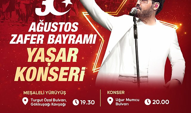 (ADANA) - Adana’da 30 Ağustos Zafer Bayramı çeşitli etkinliklerle kutlanacak. Kutlamalar kapsamında önce meşaleli yürüyüş yapılacak, ardından sanatçı Yaşar konser verecek.Büyük Zafer'in 102'nci yıl dönümü tüm yurtta olduğu gibi Adana'da da coşkuyla kutlanacak. 30 Ağustos Zafer Bayramı dolayısıyla Turgut Özal Bulvarı Gökkuşağı Kavşağı'ndan Uğur Mumcu Bulvarı'na kadar meşaleli yürüyüş yapılacak. Bugün saat 19.30'da başlayacak yürüyüşün ardından saat 20.00’de Uğur Mumcu Bulvarı'nda sevilen sanatçı Yaşar konser verecek.