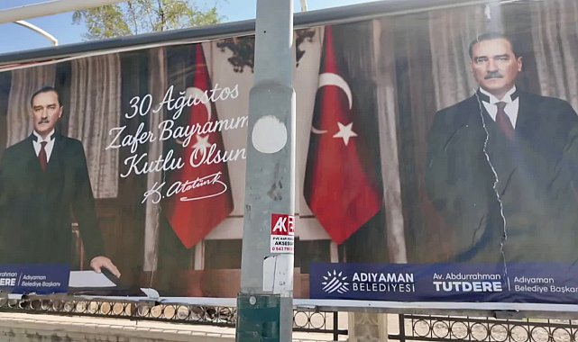 Haber: Abdurrahman AKÇAL(ADIYAMAN) – Adıyaman Belediye Başkanı Abdurrahman Tutdere’nin talimatıyla 30 Ağustos Zafer Bayramı’nın 103’üncü yıl dönümü kutlamaları öncesinde, kentin tüm cadde ve meydanları Atatürk posterleri ile donatıldı.30 Ağustos Zafer Bayramı’nın 103’üncü yıl dönümü Adıyaman’da da coşkuyla kutlandı.Adıyaman Belediye Başkanı CHP’li Tutdere’nin talimatıyla Zafer Bayramı öncesinde kentin birçok noktasına Türk bayrağı ve Atatürk posteri asıldı.