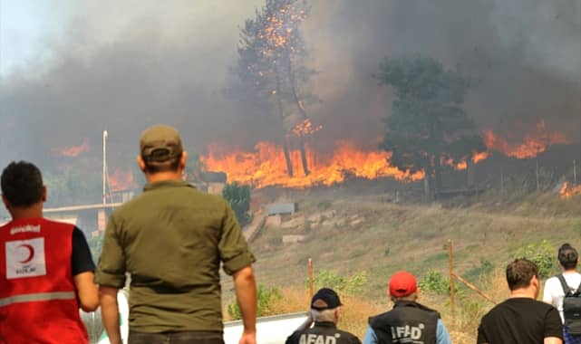 Çanakkale’de çıkan orman yangını sürüyor. Radar tepesi olarak bilinen bölgenin çevresinde süren yangının rüzgarın etkisiyle Bayramiç ilçesine doğru ilerlediği belirtiliyor. Afet ve Acil Durum Yönetimi Başkanlığı (AFAD), yangınla ilgili “4 vatandaşımız dumandan etkilenmiş olup, tedavilerine devam edilmektedir. Merkeze bağlı Kayadere, Yağcılar, Ulupınar, Belen, Kalabaklı ve Aşağıokçular köyleri AFAD koordinasyonunda Jandarma ekipleri tarafından tedbir amaçlı tahliye edilmiş olup; Kızılcaören ve Taşlıtarla köyleri için tahliye planları yapılmıştır. Çanakkale-Çan Karayolu araç ve Çanakkale Boğazı gemi trafiğine tedbir amaçlı kapatılmıştır” açıklamasını yaptı.Çanakkale’nin merkeze bağlı Kayadere köyü yakınlarında henüz bilinmeyen bir nedenle bugün orman yangını çıktı. Çıkan orman yangını nedeniyle Çanakkale-Çan Karayolu ulaşıma kapatıldı. Radar tepesi olarak bilinen bölgenin çevresinde süren yangının rüzgarın etkisiyle Bayramiç ilçesine doğru ilerlediği ifade ediliyor.AFAD, Çanakkale’de devam eden orman yangınına ilişkin bugün Twitter hesabından bir açıklama yaptı. Açıklama şöyle:“Damyeri mevkiinde, bugün meydana gelen orman yangınına müdahale çalışmaları Orman Genel Müdürlüğü koordinasyonunda devam etmektedir. Bölgeye; AFAD, Orman Genel Müdürlüğü, Emniyet Genel Müdürlüğü, Jandarma, Milli Savunma Bakanlığı, belediyeler ve özel idarelerden toplam bin 328 personel, 8 uçak, 26 helikopter, 202 arazöz, 30 su tankeri, 64 iş makinesi sevk edilmiştir.“4 VATANDAŞIMIZ DUMANDAN ETKİLENMİŞ OLUP, TEDAVİLERİNE DEVAM EDİLMEKTEDİR. ÇANAKKALE-ÇAN KARAYOLU ARAÇ VE ÇANAKKALE BOĞAZI GEMİ TRAFİĞİNE TEDBİR AMAÇLI KAPATILMIŞTIR”İçişleri Bakan Yardımcısı Sn.Münir Karaloğlu, Tarım ve Orman Bakan Yardımcısı Sn.Veysel Tiryaki ve AFAD Başkanı Sn. Vali Okay Memiş çalışmaları yerinde koordine etmek üzere bölgeye intikal etmiştir. 4 vatandaşımız dumandan etkilenmiş olup, tedavilerine devam edilmektedir. Merkeze bağlı Kayadere, Yağcılar, Ulupınar, Belen, Kalabaklı ve Aşağıokçular köyleri AFAD koordinasyonunda Jandarma ekipleri tarafından tedbir amaçlı tahliye edilmiş olup; Kızılcaören ve Taşlıtarla köyleri için tahliye planları yapılmıştır. Çanakkale-Çan Karayolu araç ve Çanakkale Boğazı gemi trafiğine tedbir amaçlı kapatılmıştır. Tüm imkanlarımız ile Yeşil Vatan için mücadele etmeye ve milletimizin yanında olmaya devam ediyoruz.”