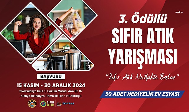 (ANTALYA) - Alanya Belediyesi tarafından düzenlenen “Sıfır Atık Mutfakta Başlar” yarışması başladı. 30 Aralık’a kadar devam edecek yarışmada, katılımcılar 50 adet ev eşyası kazanacak.Alanya Belediyesi’nin bu yıl üçüncüsünü düzenlediği “Sıfır Atık Mutfakta Başlar” yarışması bugün itibarıyla başladı. Daha yeşil, daha temiz bir dünya için israfı önlemek, kaynakları verimli kullanmak, atık miktarını azaltmak ve atıkları geri kazanmak, yarınlara temiz bir dünya bırakmak amacıyla yapılan çalışmaları teşvik eden yarışma, 30 Aralık’a kadar devam edecek. 50 adet ev eşyasının ödül olarak dağıtılacağı yarışmanın ödül töreni ise 15 Ocak 2025 tarihinde Alanya Kültür Merkezi’nde yapılacak. Yarışmanın birincisine kurutmalı çamaşır makinesi, ikincisine robot süpürge, üçüncüsüne ise bulaşık makinesi hediye edilecek. Hane halkının katılacağı ödüllü yarışmanın başlangıcını Alanya Belediye Meclis üyesi İrem Yunusoğlu yaparak, tüm vatandaşları yarışmaya davet etti. Yarışmaya katılmak isteyen vatandaşlar, ‘https://www.alanya.bel.tr’ üzerinden başvuru formunu doldurabilecek. Katılımcılar evlerinden çıkan geri dönüşüm sınıfına giren atıklarını biriktirerek, teslim zamanında gelen görevliye teslim edecek. Atık teslim zamanlarında yarışmacıların veri kayıtları için kimlik göstermeleri yeterli olacak. Atık teslim fişleri seri numaralı olarak iki suret halinde düzenlenecek. Fişler, hem atığı teslim eden yarışmacıda hem de atık toplayan görevli personelde kayıtlı halde tutulacak.Geri dönüşüm olmayan atıklar kabul edilmeyecekYarışmaya her haneden bir kişi katılabilecek ve yarışmaya katılmak için Alanya sınırlarında ikamet etmek gerekecek. Belediye temizlik personeli, geri dönüşüm firma personeli ve aileleri yarışmaya katılamayacak. Ambalaj dışındaki atıklar teslim alınmayacak. Yarışma için belirlenen süre içerisinde aynı kişi birden fazla kez atık teslim edebilecek. Atık teslim günleri her yarışmacıya bildirilecek. Atıklar yarışmacı tarafından teslim edilirken, görevli personel tarafından tartılarak fiş karşılığında teslim alınacak. Teslim edilen atıkların bir hanede oluşmayacak şekilde çok fazla olması halinde katılımcı yarışmadan elenecek.