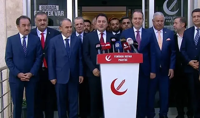 (ANKARA) - DEVA Partisi Genel Başkanı Ali Babacan, Yeniden Refah Partisi Genel Başkanı Fatih Erbakan'ı ziyaret etti. Babacan, "DEVA Partisi ile Gelecek Partisi arasında devam eden bir görüşme trafiği var. Dolayısıyla biz olumlu bakıyoruz sürece, birleşme sürecine ama süreç devam ettiği için olur mu, olmaz mı, ne zaman sonuçlanır, bununla ilgili bugünden bir şey söylememiz mümkün değil" dedi.DEVA Partisi Genel Başkanı Ali Babacan, Yeniden Refah Partisi Genel Başkanı Fatih Erbakan'a parti genel merkezinde nezaket ziyaretinde bulundu. İki Genel Başkan, yaklaşık 1 saat süren görüşmenin ardından ortak basın açıklaması yaptı. Babacan, şunları söyledi:"Türkiye'nin sorunları gerçekten çok büyük, gittikçe de büyüyor. Böylesine hızlı büyüyen sorunların çözümü için çok daha yoğun bir istişare ve çok daha yoğun bir görüş alışverişinin son derece önemli olduğunu düşünüyoruz. Siyasi partilerin birbiriyle yaptığı temaslar, görüş alışverişi hem sorun tespiti hem de sorunların aşılmasıyla ilgili çok çok kıymetli. Bundan sonraki süreçte Yeniden Refah Partisi'yle DEVA Partisi arasındaki temasların daha sıklaştırılması, diyaloğun iki parti arasında sıhhatli bir şekilde işlemesi ve muhtemelen işbirliği alanlarında süreç içerisinde görüşülmesiyle ilgili değerlendirmeler yaptık."Erbakan: DEVA Partisi ve Yeniden Refah Partisi arasında diyaloğun artırılması yönünde bir karar aldıkBabacan'ın ardından konuşan Yeniden Refah Partisi Genel Başkanı Erbakan da görüşmede karşılıklı fikir alışverişinde bulunduklarını belirterek, "Türkiye'nin içinde bulunduğu durum ele alındı. Karşılıklı fikir alışverişinde bulunuldu. Özellikle siyasi gelişmeler, ekonomi konusundaki sıkıntılar ele alındı. Sayın başkanın ekonomi yönetimi konusundaki tecrübesi dolayısıyla da kendisinden önemli bilgiler aldık ve bir fikir alışverişinde bulunduk. Bundan sonra DEVA Partisi ve Yeniden Refah Partisi arasında görüşmelerin daha sık bir şekilde devam etmesi, diyaloğun artırılması yönünde bir karar aldık" diye konuştu.Babacan: Gelecek Partisi ile birleşme sürecine olumlu bakıyoruzDEVA Partisi ile Gelecek Partisi'nin Meclis'te ortak grup kurma çalışmalarıyla ilgili soru üzerine Babacan, şu yanıtı verdi:"DEVA Partisi ile Gelecek Partisi arasında devam eden bir görüşme trafiği var. Bu görüşme trafiğinin amacı da iki parti arasında bir birleşmenin mümkün olup olmayacağı. Süreç devam ettiği için bu sürecin detayları ile ilgili bugünden bilgi vermemizin, fikir ortaya koymamızın doğru olmadığını düşünüyorum. Dolayısıyla biz olumlu bakıyoruz sürece, birleşme sürecine ama süreç devam ettiği için olur mu, olmaz mı, ne zaman sonuçlanır, bununla ilgili bugünden bir şey söylememiz mümkün değil."