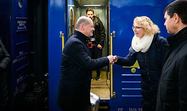 (ANKARA) - Almanya Başbakanı Olaf Scholz 2,5 yıl aradan sonra ilk kez Ukrayna’nın başkenti Kiev'i ziyaret etti.Almanya Başbakanı Olaf Scholz, Ukrayna Cumhurbaşkanı Volodimir Zelenskiy ile görüşmek üzere 2,5 yıl aradan sonra ilk kez Kiev’i ziyaret etti. Almanya Başbakanı Kiev'e ziyaretini sosyal medya platformu X üzerinden yaptığı bir açıklama ile duyurdu. Scholz X paylaşımında ''Ukrayna bize güvenebilir. Söylediğimizi yapıyoruz, yaptığımızı söylüyoruz. Bunu bir kez daha teyit etmek için, bu gece Kiev'e geldim: 1000 gündür Rus saldırılarına karşı savunma yapan bir ülkeye trenle seyahat ettim'' dedi.Almanya merkezli DPA, Scholz'un seyahatinin "güvenlik nedenleriyle" önceden duyurulmadığı belirtti. Scholz daha önce Almanya'nın aralık ayında Ukrayna'ya 650 milyon euro değerinde silah tedariğinde bulunacağını açıklamıştı. Scholz geçen ay, iki yılın ardında ilk kez Rusya Devlet Başkanı Vladimir Putin ile telefonda görüşmiştü.Scholz’un Kiev ziyareti, Ukrayna ile Rusya arasındaki çatışmaların arttığı ve Almanya’da koalisyon hükümetinin gelecek yıl Şubat ayında yapılacak seçimlerde iktidarı kaybetmesi olasılığı ile karşı karşıya olduğu bir dönemde yapılıyor.Ziyaret, ayrıca ABD’nin Seçilmiş Başkanı Donald Trump'ın ikinci dönem başkanlığının Ukrayna savaşının dinamiklerini değiştireceği yönünde beklentilerin oluştuğu bir zamanda gerçekleşiyor. Trump seçim kampanyası sırasında ABD'nin Ukrayna'ya yönelik askeri yardımlarını geri çekeceğini söylemiş ve çatışmayı sona erdireceğine dair vaatlerde bulunmuştu.