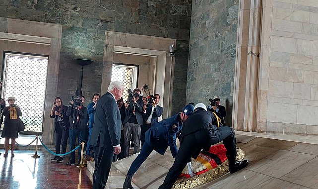 (ANKARA) - Resmi ziyaret için Türkiye'de bulunan Almanya Cumhurbaşkanı Frank-Walter Steinmeier, Anıtkabir'i ziyaret etti.Almanya Cumhurbaşkanı Steinmeier, Almanya'nın Ankara Büyükelçisi Jürgen Schulz ile birlikte Anıtkabir'e geldi. Almanya Cumhurbaşkanı ve beraberindeki heyet Aslanlı Yol'dan yürüyerek tören alanına geçti. Steinmeier, kırmızı beyaz karanfillerden oluşan ve Alman bayrağı renklerinin bulunduğu çelengi Ulu Önder Mustafa Kemal Atatürk'ün mozolesine koydu ve saygı duruşunda bulunuldu. Steinmeier ve beraberindeki heyet, Anıtkabir merdivenlerinde hatıra fotoğrafı çektirdi. Daha sonra Misak-ı Milli Kulesi'ne geçen Almanya Cumhurbaşkanı Steinmeier, Anıtkabir Özel Defteri'ne şunları yazdı:"Almanya Devlet Başkanı olarak Türkiye Cumhuriyeti'ni ziyaret etmekten ve bu devletin kurucusu Mustafa Kemal Atatürk'e derin saygılarımı sunmaktan büyük onur duyuyorum.O'nun Avrupa'ya bakışı, Almanya ile Türkiye Cumhuriyeti arasındaki 100 yıllık derin dostluğun temelini atmıştır. Ülkelerimizin insanları, diğer ülkede daha iyi bir yaşam veya koruma arayan cesur erkek ve kadınların birçok hikayesiyle karakterize edilen derin bir bağ hissetmektedir. Milyonlarca Türk kökenli insan bugün ülkemi zenginleştirmektedir. Bu bağlantılar hazinesi, ilişkilerimizin daha da geliştirilmesi için bir mihenk taşıdır."