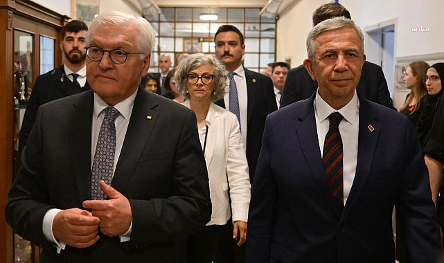 (ANKARA) - Almanya ile Türkiye arasındaki diplomatik ilişkilerin 100'üncü yıl dönümü dolayısıyla Türkiye'ye resmi ziyarette bulunan Almanya Cumhurbaşkanı Frank-Walter Steinmeier, Ankara Üniversitesi Dil, Tarih ve Coğrafya Fakültesi'nde Ankara Büyükşehir Belediye Başkanı Mansur Yavaş ile görüştü. Steinmeier, "Sadece bu heyettekiler değil, tüm Almanya seçimdeki büyük başarınızı biliyor. Almanya’da seçimler ilgiyle izlendi" dedi.Almanya Cumhurbaşkanı Steinmeier'in Ankara Büyükşehir Belediye Başkanı Yavaş ile görüşmesi basına kapalı yapıldı. Görüşmede Steinmeier Yavaş'a, "Sadece bu heyettekiler değil, tüm Almanya seçimdeki büyük başarınızı biliyor. Almanya’da seçimler ilgiyle izlendi" dedi.