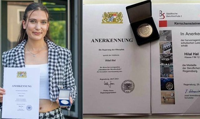 (REGENSBURG) – Almanya’nın Regensburg kentindeki Bayernhafen Meslek Okulu’nda eğitim gören Hilal Hal, büyük bir başarıya imza atarak okul tarihine geçti. Dört yıllık mesleki eğitim programını üç yılda tamamlayan Hal, aynı zamanda okulda "liman sistemleri" bölümünü bitiren ilk kız öğrenci unvanını kazandı.Ordulu gurbetçi bir ailenin çocuğu olan 24 yaşındaki Hilal Hal, Almanya’da mesleki eğitimde üstün başarı gösteren öğrencilere verilen prestijli “Kerscheinsteiner Madalyası” ile ödüllendirildi.Ailesinde de büyük gurur kaynağı olan Hilal Hal de ödül dolayısıyla büyük sevinç yaşadı.Okul yönetimi, Hal’in başarısının diğer öğrencilere ilham vereceğini belirterek, bu ödülün mesleki eğitimin önemini bir kez daha ortaya koyduğunu vurguladı.Bayernhafen Meslek Okulu yetkilileri, “Hilal Hal yalnızca zamanından önce mezun olmakla kalmadı, aynı zamanda akademik ve pratik başarılarıyla da örnek bir öğrenci profili çizdi” açıklamasında bulundu.