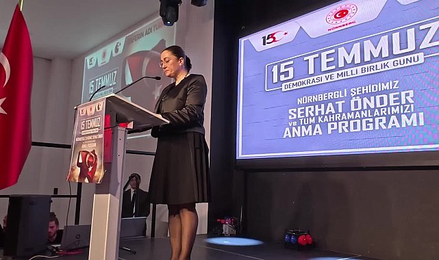 "Babam sizler gibiydi"Törende konuşan Serhat Önder’in kızı Hilal Elif Haltaş, babasının Almanya’da doğup büyüdüğünü hatırlatarak, “Babam sizlerden biriydi. Yıllarca bu şehirde çalıştı, yaşadı. Babamın sevdası vatandı. Vatan sevdası onu sonsuzluğa uğurladı” dedi.Önder’in sivil bir vatandaş olduğunu belirten Haltaş, “Bana hep aynı soru soruldu: Baban asker miydi? Hayır, babam sivildi ama bilmezler ki her Türk asker doğar. Babam o gece çağrıya kulak verdi. Bu çağrı sadece Cumhurbaşkanımız Erdoğan’ın değil, Gazi Mustafa Kemal Atatürk’ün gençliğe hitabında yaptığı çağrıdır” ifadelerini kullandı."Korkma dedi ve gitti"Serhat Önder’in o gece Meclis bombalandığında ailesine dönerek İstiklal Marşı'nın "Korkma!" kelimesiyle moral verdiğini belirten Haltaş, gözyaşları içinde şunları söyledi:“Bizden helallik istedi. Ben bir sonraki buluşmanın ahirette olacağını bilmiyordum. Kurşunla değil, imanla ve kalbiyle yürüdü. Babam bu kirli oyunu bozanlardan biri oldu. Canını verdi ama vatanını bırakmadı.”15 Temmuz milletin direnişidirMÜSİAD Kuzey Bavyera Bölge Başkanı Haluk Dokur, 15 Temmuz’un sadece bir darbe girişimi olmadığını belirterek “O gece tanklara, tüfeklere karşı millet yüreğiyle direndi. Bu gece, bağımsızlığa yapılan hain saldırının sabaha döndüğü gecedir. Su uyur, düşman uyumaz; biz bu bilinci diri tutmalıyız" dedi.Türk Federasyon Genel İdari Kurulu Üyesi Kudret Yılmaz, konuşmasında 15 Temmuz’un bir milletin kaderine sahip çıkışı olduğunu söyleyerek “Bu tarih, ihanete karşı vatanseverliğin; sürünmeye karşı dik duruşun; dua ve şehadetin ispatıdır. 15 Temmuz, hainlere vurulan bir tokattır" diye konuştu.Deliduman: “Kutsallar üzerinden saldırıya uğradık”Uluslararası Demokratlar Birliği (UID) Kuzey Bavyera Bölge Başkanı Yılmaz Deliduman ise darbe girişiminin, dini değerler üzerinden yapılan bir saldırı olduğunu belirterek “O gece dindarlar ve din adamları itibarsızlaştırılmak istendi. Ama vatan için canını veren Ömer Halisdemirler, Serhat Önderler ortaya çıktı. Bu millet Malazgirt ruhuyla birleşti" dedi."Vatan nefestir, kimliğimizdir"İslam Toplumu Milli Görüş (IGMG) Kuzey Bavyera Başkanı İsmail Satır da konuşmasında vatan kavramının önemine değinerek “Vatan sadece toprak değil; kimliğimiz, aldığımız nefestir. Darbeler bizi yıldıramaz. Hem doğduğumuz toprakları hem yaşadığımız bu toprakları vatan bilerek yaşıyoruz" ifadesini kullandı.Diyanet İşleri İslam Birliği (DİTİB) Kuzey Bavyera Başkanı Uğur Cankurt ise 15 Temmuz’un üzerinden geçen 9 yıla rağmen, o gecenin hafızalarda taze olduğunu vurgulayarak “El ele, omuz omuza vererek selalar eşliğinde vatanımıza göz dikenlerin oyunlarını bozduk" dedi.Program ilahi dinletisi ile devam etti. Şehitler için Dokur Catering firması tarafından hazırlanan helvalar dağıtıldı. Katılımcılar dualarla 15 Temmuz şehitlerini andı.