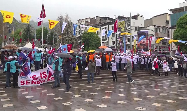 (AMASYA)- Amasya'da işçiler, 1 Mayıs Emek ve Dayanışma Günü'nü yağmur altında türküler ve halaylarla kutladı.