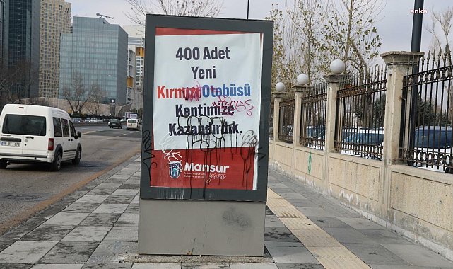 Ankara Büyükşehir Belediyesi'nin halkı bilgilendirdiği panolara boyalı saldırı düzenlendi.Ankara Büyükşehir Belediyesi'nin Hipodrom Caddesi üzerindeki bilgilendirme panolarına boyalı saldırı düzenlendi. "Hacıkadın Kent Ormanı, Çubuk-1 Barajı, Gazi Parkı, 30 Ağustos Zafer Parkı... Yeni 100 yeşil alanı kentimize kazandırdık", "Türkiye'nin en kapsamlı kırsal kalkınma desteğinde bulunuyoruz", "400 adet yeni kırmızı otobüsü kentimize kazandırdık" mesajlarının yer aldığı afişlerin bulunduğu panolar, vandalların saldırısına uğradı.