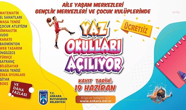 Yaz Okulu ile ilgili etkinlik bilgileri ve ilgili yaş grupları ile iletişim bilgilerine, “https://www.ankara.bel.tr” adresinden ulaşılabiliyor.