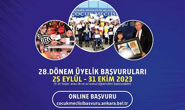 28'inci Dönem Çocuk Meclisi üyesi olmak isteyen ilk veya ortaokul öğrencisi 9-14 yaş arasındaki çocuklar, https://cocukmeclisibasvuru.ankara.bel.tr/ adresi üzerinden başvuru yapabilecek.