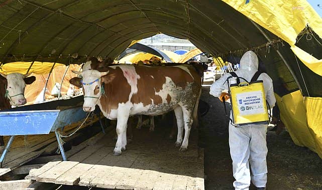 Ankara Büyükşehir Belediyesi, BelPlas AŞ’ye bağlı 230 personel ve 60 ekip ile kurban satış alanlarında ilaçlama ve dezenfeksiyon çalışması gerçekleştiriyor.