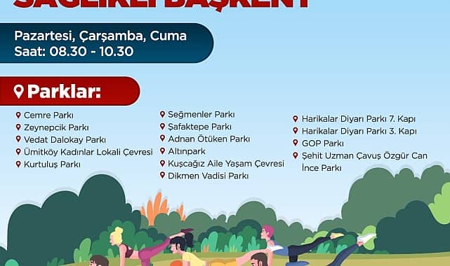 ‘Sağlıklı Adımlar, Sağlıklı Başkent’ sloganıyla gerçekleştirilen ücretsiz spor etkinliğinin düzenleneceği parklar ise şöyle: