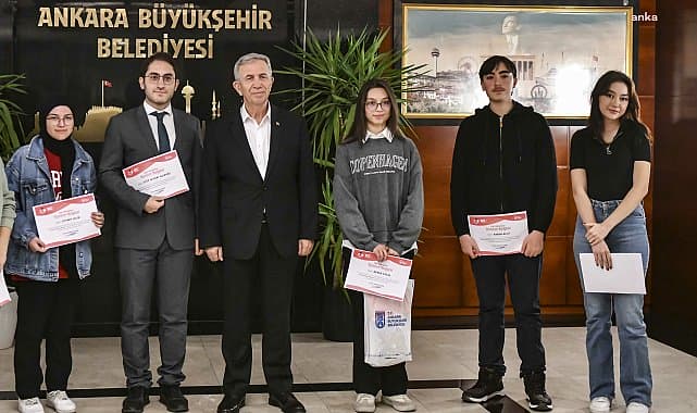 Ankara Büyükşehir Belediyesi'nin 29 Ekim Cumhuriyet Bayramı temalı şiir yarışması sonuçlandı. Yarışmada dereceye giren 6 öğrenciye, teşekkür belgelerini, Ankara Büyükşehir Belediye Başkanı Mansur Yavaş takdim etti.