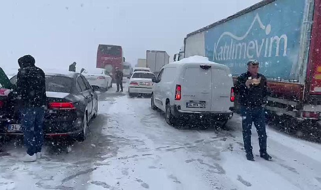 (ANKARA) - Ankara-İstanbul yolunda kar yağışı ve buna bağlı olarak yaşanan kazalar nedeniyle trafik durma noktasına geldi. Meteoroloji'nin uyarılarının ardından yurtta soğuk hava ve kar etkili olmaya başladı. Ankara-İstanbul yolu üzerinde yakınlarında şiddetli kar yağışı ve buna bağlı yaşanan kazalar nedeniyle trafik durma noktasına geldi. Ankara’dan İstanbul’a gitmekte olan vatandaşlar, Bolu Tüneli’ne 10 km kala trafik akışının durması nedeniyle bir süre yolda beklemek zorunda kaldı.Kar yağışı nedeniyle yolların buz tuttuğu görüldü. Şiddetli kar yağışı ve yoğun tipinin hakim olduğu bölgede, bazı vatandaşlar, trafik akışının durması nedeniyle araçlarından inerek yolda bekledi.