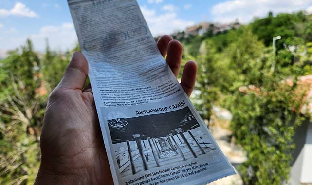 “Başkent Ankara 100. Yıl, 13 Ekim 1923” damgası ile Ankara Miras logosu bulunan faturalardaki ilk bilgilendirme; UNESCO Dünya Miras Geçici Listesi’nde yer alan ‘Arslanhane Camisi’ hakkında oldu.