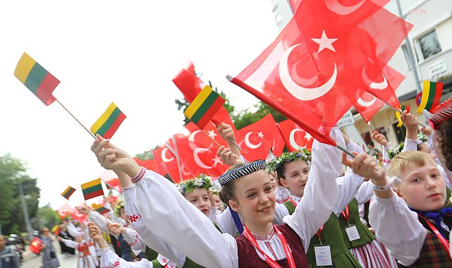 (ANTALYA) - Antalya Büyükşehir Belediyesi'nin 23 Nisan Ulusal Egemenlik ve Çocuk Bayramı kutlamaları büyük bir coşku ile başladı. Kutlamalar için dünyanın dört bir yanından Antalya’ya gelen çocuklar Sevgi Korteji düzenledi, Cumhuriyet Meydanı’nı kültürel motiflerle bezenmiş dansları ile renklendirdi.Antalya Büyükşehir Belediyesi, Antalya Valiliği, İl Milli Eğitim Müdürlüğü ve Gençlik Spor İl Müdürlüğü iş birliği ile FOMGED Gençlik Kulübü’nün düzenlediği 23 Nisan Uluslararası Antalya Çocuk Şenliği kapsamında 15 farklı ülkeden Antalya’ya gelen 500 çocuk, Büyükşehir Belediyesi Bandosu eşliğinde Sevgi Korteji yaptı. Türkiye’nin çeşitli şehirlerinden gelen çocukların da yer aldığı kortej, Atatürk Parkı’ndan başlayıp Cumhuriyet Meydanı’na kadar vatandaşların yoğun ilgisi ile devam etti. DANS GÖSTERİLERİCumhuriyet Meydanı’nda sona eren kortej sonrası saygı duruşunda bulunuldu ve İstiklal Marşı okundu. Meydanda kurulan sahnede Ukrayna, Polonya, Litvanya, Özbekistan, K.K.T.C, Azerbaycan, Gürcistan, Kırgızistan, Tataristan, İran, Romanya, Endonezya, Kazakistan ve Estonya’dan gelen çocuklar, ülkelerine özgü dansları ve müziklerini Antalyalıların beğenisine sundu. Antalyalılar bu anları cep telefonları ile fotoğraf çekerek ölümsüzleştirdi.