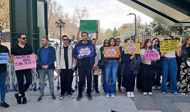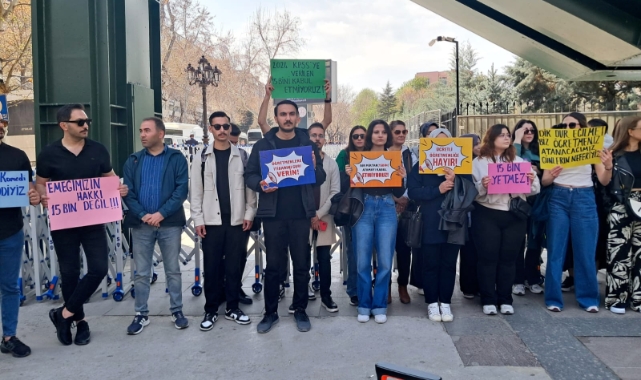 Öğretmen adayları, taşıdıkları "Emeğimizin hakkı 15 bin değil", "Öğretmenlerin itibarını geri verin", "Bir miktar atamayı kabul etmiyoruz", "Ücretli öğretmenliğe hayır", "15 bin yetmez" yazılı pankartlarla taleplerini dile getirdiler.