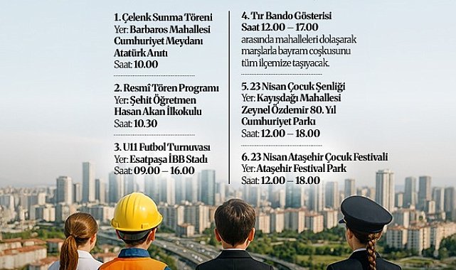 (İSTANBUL)- Ataşehir Belediyesi, 23 Nisan Ulusal Egemenlik ve Çocuk Bayramı’nı renkli etkinliklerle kutlamaya hazırlanıyor. Etkinliklerde, resmi törenlerin yanı sıra Ataşehir’in farklı noktalarında gün boyu sürecek çocuk şenlikleri, konserler, atölyeler ve sahne gösterileri yer alacak. 23 Nisan Ulusal Egemenlik ve Çocuk Bayramı, Ataşehir’de coşkuyla karşılanıyor. Ataşehir Belediyesi tarafından Ataşehir Festival Park ve Kayışdağı 80. Yıl Cumhuriyet Parkı’nda düzenlenecek etkinliklerde, çocuklar ve aileleri keyifli bir gün yaşayacak. Kutlamalar, saat 10.00’da Barbaros Mahallesi Cumhuriyet Meydanı Atatürk Anıtı’na çelenk sunma töreniyle başlayacak. Ardından saat 10.30’da Şehit Öğretmen Hasan Akan İlkokulu’nda gerçekleştirilecek resmi tören programı şiirler, oratoryolar, halk oyunları ve müzikli gösterilerle devam edecek.Ataşehir Festival Park ve Kayışdağı Zeynel Özdemir 80. Yıl Cumhuriyet Parkı, 23 Nisan Çocuk Festivali kapsamında saat 12.00’den itibaren minik ziyaretçileri ağırlayacak. Her iki alanda da saat 18.00’e kadar sürecek etkinliklerde dans gösterimi, illüzyonist gösterisi, karaoke, zumba, bubble show gibi aktiviteler yer alacak. Gün boyunca Ataşehir Festival Park ve Kayışdağı 80. Yıl Parkı’nda gerçekleşecek konser programlarıyla çocuklar keyifli anlar yaşayacak. Bayram günü 12.00-17.00 saatleri arasında Ataşehir Belediyesi’nin bando ekibi tır üzerinde mahalleleri dolaşarak marşlarla bayram coşkusunu şehre yayacak.Ataşehir Belediyesi Spor İşleri Müdürlüğü ile Ataşehir Amatör Spor Kulüpleri Birliği iş birliğinde düzenlenecek U11 Futbol Turnuvası, saat 09.00- 16.00 arasında İBB Esatpaşa Stadı’nda gerçekleşecek. İlçedeki amatör spor kulüplerinin katılımıyla gerçekleşecek turnuva, sporun birleştirici gücü çocuklar ile buluşacak.