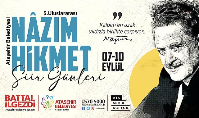 “Ataşehir Belediyesi 5. Uluslararası Nâzım Hikmet Şiir Günleri” etkinliğinin İstanbul’da edebiyat alanında gerçekleştirilen en güzel ve en anlamlı etkinlikler arasında yer aldığını vurgulayan Ataşehir Belediye Başkanı Battal İlgezdi, “Uluslararası Nâzım Hikmet Şiir Günleri, bizim gerçekten çok önemsediğimiz festivallerimiz arasında önemli bir yere sahiptir ve bu etkinliğimizi her yıl yapıyor olmanın gurur ve mutluluğunu yaşıyoruz. Sanat dallarının en önemli disiplinlerinden biri olan edebiyatın, Ataşehir’de böyle bir festivalle taçlandırılmasını önemsiyor bütün İstanbulluları ve Ataşehirlileri 5. Uluslararası Nâzım Hikmet Şiir Günleri’ne bekliyoruz” dedi.