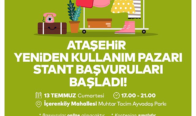 (iSTANBUL)- Ataşehir Belediyesi'nin atık miktarının azaltılmasına katkı sağlamak için hayata geçirdiği 'Ataşehir Yeniden Kullanım Pazarı', yaz boyunca devam edecek. Katılımcılar, satmak veya takas etmek istediği en az 20 adet ikinci el eşyasını ücretsiz stantlarda satışa sunabilecek.Bilinçli tüketim ve geri dönüşüm kültürünün gelişimine katkı sağlamak için Ataşehir Belediyesi tarafından hayata geçirilen Ataşehir Yeniden Kullanım Pazarı’nda, kıyafetten ev aksesuarına, oyuncaktan kitaba, takıdan elektronik eşyaya kadar pek çok ürün satışa sunulacak.Yaz boyunca iki haftada bir cumartesi akşamları düzenlenecek pazarın ilki, 13 Temmuz’da İçerenköy Mahallesi Muhtar Tacim Ayvadaş Parkı’nda kurulacak.Pazara katkı sunmak isteyenler, ücretsiz stant başvurusunda bulunabilecek. Satılmak veya takas edilmek istenen en az 20 adet ikinci el eşya, pazarı ziyaret edenlere satılabilecek.