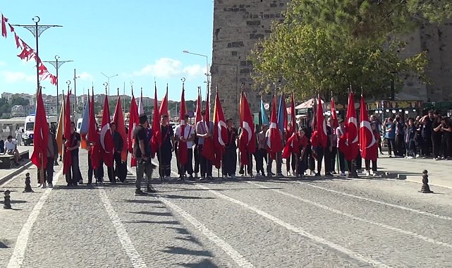 İskele Meydanı’ndaki tören halk oyunları gösterisi ile başladı. Sonrasında meydanda toplanan vatandaşlar ve devlet erkanını, Atatürk'ün Sinop'a gelişini simgeleyen ve Türk bayraklarıyla donatılan tekne karşıladı. 97 yıl önce Atatürk'ün kente gelişinde çekilen fotoğrafı ve Türk bayrağını taşıyan öğrenciler, tekneden inerek protokolü selamladı.