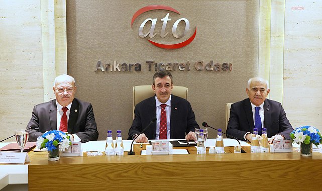 ATO Yönetim Kurulu Başkanı Gürsel Baran, ATO Meclis Başkanı Mustafa Deryal, ATO Yönetim Kurulu ve Meclis üyeleri ile birlikte, Cumhurbaşkanı Yardımcısı Cevdet Yılmaz’ı konuk etti. ATO Duatepe Hizmet Binası’nda gerçekleşen toplantıya, Ticaret Bakan Yardımcısı Özgür Volkan Ağar, Çalışma ve Sosyal Güvenlik Bakan Yardımcısı Lutfihak Alpkan, Hazine ve Maliye Bakan Yardımcısı İ. İlhan Hatipoğlu, Sanayi ve Teknoloji Bakan Yardımcısı Çetin Ali Dönmez de katıldı.