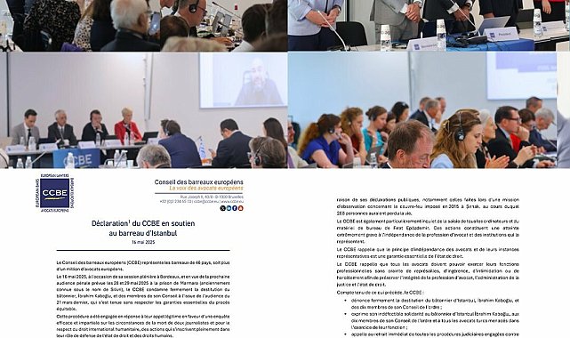 16 Mayıs 2025 tarihinde Bordeaux'da düzenlenen Genel Kurul Toplantısı vesilesiyle ve 28-29 Mayıs 2025 tarihlerinde Marmara Cezaevi'nde (eski adıyla Silivri Cezaevi) yapılması öngörülen ceza duruşmasını göz önünde bulundurarak CCBE, İstanbul Barosu Başkanı İbrahim Kaboğlu ve Yönetim Kurulu üyelerinin, adil yargılamanın temel güvencelerine saygı gösterilmeksizin 21 Mart'ta yapılan duruşma sonrasında görevden alınmalarını şiddetle kınamaktadır.