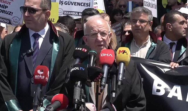 Üstün olan anayasal norm ve düzendir; kimsenin Anayasa’nın ve hukukun üstünde gücü yoktur. Türkiye Cumhuriyeti, talimatlar devleti değil hukuk devletidir. Bütün anayasal kurumları ve kamu görevlilerini Anayasa’ya saygıya çağırıyoruz.Erinç Sağkan: Saldırılar münferit değil, bütünü hedef alan, organize, politik ve süreklilik arz eden bir niteliğe sahiptirKaboğlu'nun ardından söz alan Türkiye Barolar Birliği Başkanı Erinç Sağkan ise Türkiye'de son dönemde hukuk devleti ilkesinden sistematik olarak uzaklaşıldığını, başta ifade hürriyeti, kişi özgürlüğü ve güvenliği ve adil yargılanma hakkı olmak üzere temel hak ve özgürlüklerin teminatı olması gereken yargı sisteminin aksine araçsallaştırılmak suretiyle hakları kısıtlayan bir yapıya dönüştüğünü gördüklerini söyledi. Sağkan, "Bugün, üzerinde 'Adalet Sarayı' yazan bir binanın önünde, yalnızca bir isim değil, bir ilke olarak adaletin peşinden yürümek için toplandık. Ama ne yazık ki bu binanın taşıdığı isimle temsil ettiği adalet duygusu arasındaki mesafe, gün geçtikçe daha da açılıyor. Burada olmamızın nedeni yalnızca bir kişiye yönelmiş hukuksuzluk değil; savunma makamının sistemli şekilde kuşatılmak istenmesidir. Ve artık hepimiz biliyoruz ki bu saldırılar münferit değil, bütünü hedef alan, organize, politik ve süreklilik arz eden bir niteliğe sahiptir" dedi. Sağkan şunları söyledi:"Son bir yıl içinde hukukun üstünlüğü, yargı bağımsızlığı ve insan hakları için defalarca bir araya geldiğimiz gibi savunmayı ve savunma hakkını savunmak için de buradaydık. İstanbul Barosu Başkanı ve Yönetim Kurulu üyelerinin görevden alınmaları hakkında açılan dava için bu adliyenin önündeydik. Ceza davası için Silivri’deydik. Yine bir başka dosyada, Yönetim Kurulu üyesi meslektaşımızın tutukluluğu üzerine burada toplandık. 5 Nisan Avukatlar Günü’nde binlerce meslektaşımızla Ankara’da yürüdük. O gün bir söz verdik: 'Adaletin tek bir güvencesi var; o da adaleti savunmaya hazır olanların kararlılığıdır. Biz o kararlılığa sahibiz!' dedik. İşte bugün o sözü yine, yeniden, hep birlikte tekrarlıyoruz!"Savunma korkmaz, savunma susmaz, savunma asla teslim olmaz!"Çünkü biliyoruz ki bu irade yalnızca meslek onurunu değil, yurttaşın haklarını, hukukun üstünlüğünü ve adil yargılanma hakkını da savunmanın iradesidir. Ve bu iradeyi hiçbir güç teslim alamaz! Tehditlerle, soruşturmalarla, tutuklamalarla, itibar suikastlarıyla sınamaya kalkışsalar da cevabımız net: Savunma korkmaz, savunma susmaz, savunma asla teslim olmaz!Bugün burada bu açıklama ile birlikte, aynı zamanda meslektaşımız Av. Mehmet Pehlivan’ın hukuksuz tutuklanmasına karşı itiraz dilekçemizi de sunduk. Savcılığın tutuklamaya sevk yazısı aslında yapılmak istenileni tek başına ortaya koyuyor. Hakkında işlem yapılan şüphelilerle ilgilenecek avukatların belirlenmesi, avukatların cezaevine yönlendirilmesi, ifadelere ulaşmak, ifadeler konusunda strateji belirlemek. Bunların yanına birde tutuklu şüphelileri ifadeleri konusunda baskı altına almak gibi fiilen mümkün olmayan tamamen soyut bir isnat eklenerek 'örgüt üyeliği' gibi büyük suçlamalarla kamuoyunda algı yaratılmak ve avukatlık faaliyeti kriminalize edilmek istenmektedir."Savunma faaliyetlerini örgütsel yapı gibi sunmak ise, yalnızca savunmaya değil, savunma hakkına da doğrudan saldırıdır"Amacı görüyor ve biliyoruz ancak kamuoyunu kısaca bilgilendirelim; bu tür çok sayıda şüphelinin ve farklı soruşturmaların bir arada yürütüldüğü kapsamı geniş soruşturmalarda, avukatlar arasında koordinasyonun sağlanması; savunma stratejisine ilişkin planlama, mesleki tecrübe paylaşımı ve hukuki yardımın etkinleştirilmesi amacıyla yapılır. Avukatların kendi aralarında görev dağılımı yapmaları, strateji belirlemeleri, gözaltı süreçlerine hazırlıklı olmaları yalnızca hak değil, mesleki sorumluluktur. Bu tür savunma faaliyetlerini örgütsel yapı gibi sunmak ise, yalnızca savunmaya değil, savunma hakkına da doğrudan saldırıdır.İstiyorlar ki; savunma savcının işbirlikçisi olsun...Niyetin ne olduğunu biliyoruz. İstiyorlar ki; savunma savcının işbirlikçisi olsun, soruşturma sürecindeki hukuka aykırılıkları meşrulaştırsın,