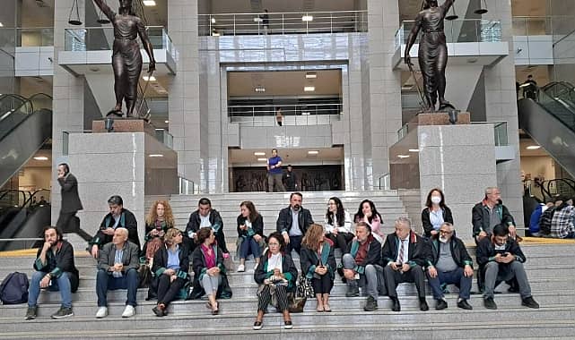 Avukatlar, Anayasa Mahkemesi'nin (AYM), "hak ihlali" kararına rağmen cezaevindeki Türkiye İşçi Partisi (TİP) Hatay Milletvekili, meslektaşları Can Atalay'ın serbest bırakılmamasını protesto için dün İstanbul Adalet Sarayı'ndaki Themis Heykelleri'nin önünde başlattıkları oturma eylemine bugün de devam ediyor.AYM, son seçimlerde TİP'ten Hatay Milletvekili seçilen cezaevindeki Can Atalay'ın “seçilme hakkı” ve “kişi hürriyeti ve güvenliği hakkı” yönlerinden hak ihlali olduğuna hükmetti. AYM’nin 25 Ekim'de 5'e karşı 9 oyla aldığı "hak ihlali" kararı aynı gün 13. Ağır Ceza Mahkemesi'ne ulaştı. Gerekçeli karar da bugünkü Resmi Gazete'de yayınlandı. Avukatlar, hala serbest blırakılmayan meslektaşları Can Atalay için dün İstanbul Adliyesi'nde bulunan Themis Heykeli önündeki merdivenlerde başlattıkları oturma eylemini bugün de sürdürüyor.NE OLMUŞTU?Gezi Davası tutuklusu Can Atalay TİP’ten Hatay Milletvekili seçilmesinin ardından “milletvekili seçilmesi nedeniyle hakkındaki yargılamanın durması ve tahliye edilmesi” talebi Yargıtay 3. Ceza Dairesi'nce reddedilmişti.Bunun üzerine Atalay’ın avukatları yargılamada durma kararı verilmesi ve tahliye talebinin reddedilmesi nedeniyle Anayasa Mahkemesi’ne bireysel başvuruda bulunmuştu.Bu arada, Yargıtay 3. Ceza Dairesi, Gezi Parkı davasında Can Atalay’a verilen 18 yıl hapis cezasını onamıştı. Anayasa Mahkemesi Genel Kurulu, 12 Ekim’de başvurunun görüşülmesini, bir üyenin dosyaya hazırlanamadığını belirtmesi üzerine ertelemişti.Anayasa Mahkemesi, 25 Ekim'de yaptığı toplantıda ise oy çokluğuyla Can Atalay'ın “seçilme hakkı” ve “kişi hürriyeti ve güvenliği hakkı” yönlerinden hak ihlali olduğuna hükmetmişti.