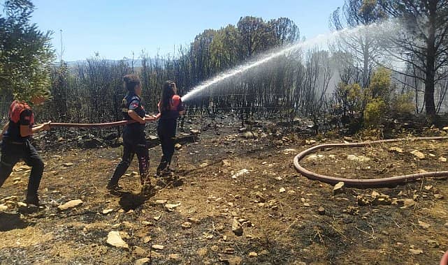 Aydın Büyükşehir Belediyesi İtfaiyesi, Yenipazar’ın Hamzabali ile Çavdar mahallelerinin ormanlık alanında çıkan yangına hızla müdahale etti. Yangın söndürme çalışmalarında Büyükşehir Belediyesi İtfaiyesi’nin kadın itfaiyecileri de görev aldı. Bugün öğleye doğru Yenipazar’ın Hamzabali ile Çavdar mahallelerinin ormanlık alanında çıkan yangını gören vatandaşların ihbarını değerlendiren Aydın İtfaiyesi ekipleri hızlı bir şekilde yangın bölgesine hareket etti. Arazide başlayan ve ormanlık alana da sıçrayan yangın, itfaiye ekiplerinin yoğun çabasıyla büyümeden kontrol altına alındı ve soğutma çalışmalarına başlandı. Yangını kontrol altına almak için Büyükşehir Belediyesi’nin kadın iftaiyecileri de canla başla çalıştı. Aydın Büyükşehir Belediye Başkanı Özlem Çerçioğlu ise vatandaşlara geçmiş olsun dileklerini ileterek orman yangınlarına karşı dikkatli olunması gerektiği konusunda vatandaşları uyardı.
