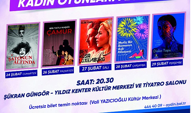 Aydın Büyükşehir Belediyesi, Türkiye’nin ve Avrupa’nın tek kadın temalı tiyatro festivali olan ‘Kadın Oyunları Festivali’ne ev sahipliği yapmaya hazırlanıyor. Aydın Büyükşehir Belediyesi Şehir Tiyatrosu, 24-29 Şubat 2024 tarihlerinde beş farklı oyunla ‘perde’ diyecek. Şükran Güngör-Yıldız Kenter Kültür Merkezi ve Tiyatro Salonu'nda sahnelenecek oyunların ücretsiz biletleri, Vali Yazıcıoğlu Kültür Merkezi’nden temin edilebilecek. Festival, 24 Şubat Cumartesi günü (yarın) William Shakespeare'in Macbeth’inden uyarlanan ‘Şatonun Altında’ oyunuyla saat 20.30’da başlayacak. 26 Şubat Pazartesi günü saat 20.30’da ‘Bir Tatlı Kaşığı Çamur’, 27 Şubat Salı günü saat 20.30’da ‘Ben Rosa Luxemburg’, 28 Şubat Çarşamba günü saat 20.30’da ‘Mutlu Bir Romanın Aşk Hikayesi’ ve 29 Şubat Perşembe günü de saat 20.30’da ‘Disko Topu’ seyircilerle buluşturulacak. Aydın Büyükşehir Belediye Başkanı Özlem Çerçioğlu, tüm kadınları ve tiyatroseverleri festivale davet etti. Çerçioğlu, sanata ve sanatçıya sahip çıkmaya devam edeceklerinin de altını çizdi.
