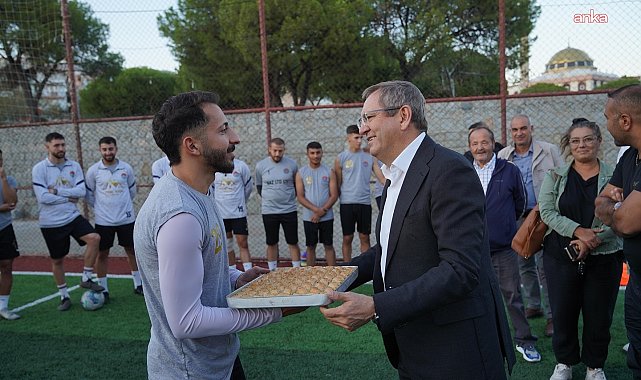 (BALIKESİR) - Ayvalık Belediye Başkanı Mesut Ergin, yeni sezona hazırlanan Yeni Mahallespor’un antrenmanını ziyaret ederek, futbolcularla ve teknik heyetle bir araya geldi.Yeni sezon öncesi Yeni Mahallespor’a destek ziyareti yapan Ergin, sporculara baklava ikramında bulunarak, “Gençlerimizin ve sporun her zaman yanındayız. Onların azmi ve mücadelesi bizlere umut veriyor. Yeni Mahallespor’umuza yeni sezonda başarılar diliyorum. Sakatlıksız, centilmence ve fair play ruhuna uygun bir sezon geçirmelerini temenni ediyorum. Ayvalık Belediyesi olarak, kentin gençlerini spora teşvik etmeye ve takımların gelişimini destekleyen projelere devam ediyoruz” dedi.