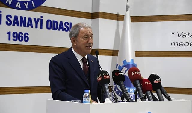Milli Savunma Bakanı Hulusi Akar, Kayseri Sanayi Odası’nın Nisan ayı meclis toplantısına katılarak iş insanları ile buluştu. Bakan Akar, yaptığı konuşmada, Türk Silahlı Kuvvetlerinin meşru zeminlerde Türkiye’yi koruması için ne gerekiyorsa yapılmasının gerektiğini söyleyerek, “Cumhurbaşkanımızın savunma sanayiine olan ısrarı bütün sistemi hareketlendirdi. Diğer fabrikalar, vakıf şirketleri eskiden de vardı. Ancak burada bir motivasyona gerek vardı. Biraz itmeye, biraz çekmeye gerek vardı. Bu gerçekleşti. Şu anda çok şükür bu noktaya gelindi. Burada akademisyenlerden, basın mensuplarından bir takıp tenkitler geliyor. Arkadaşlar bizim yaptığımız Togg dünyanın en iyi arabası değil. Bizim yaptığımız uydu dünyanın en iyi uydusu değil ama bizim malımız. Bizim bağın malı. Burada, ‘milliyetçilik, vatan severlik, sanayii desteklemek, kardeşinin yaptığını desteklemek’ deyin. Burada bu konuda buna sahip çıkmamız lazım. Benimsememiz lazım. Yoksa ‘tekeri böyleydi, direksiyonu şöyleydi’ diyerek, olmaz. İyi de yapmayalım mı? İlla bir yerden başlamayalım mı? ‘Yapacağız’ dedik ve yaptık. İnşallah bundan sonrada bu azim ve kararlılıkla milli muharip uçağını da yapacağız, tankı da yapacağız, kızıl elmayı da uçuracağız. Silahlı kuvvetlerimizin meşru zeminlerde ülkemizi ve milletimizi koruması için ne lazımsa, temel ihtiyaç maddeleri ne ise bunları bizim yapmamız lazım” şeklinde konuştu.