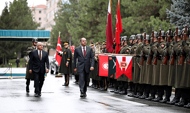 Milli Savunma Bakanı Yaşar Güler, Katar Başbakan Yardımcısı ve Savunma Bakanı Halid bin Muhammed Al-Attiyah ile bugün Bakanlık'ta bir araya geldi.Milli Savunma Bakanı Yaşar Güler, Katar Başbakan Yardımcısı ve Savunma Bakanı Halid bin Muhammed Al-Attiyah ile bugün Bakanlık'ta görüştü. Milli Savunma Bakanlığı'ndan yapılan açıklamada, "Millî Savunma Bakanı Yaşar Güler, resmî davetlisi olarak Ankara’ya gelen Katar Başbakan Yardımcısı ve Savunma Bakanı Halid Bin Muhammed Al-Attiyah’ı askerî törenle karşıladı. İki ülke marşlarının çalınmasının ardından konuk Bakan, Onur Kıtası’nı selamladı. Bakanlar Yaşar Güler ve Halid Bin Muhammed Al-Attiyah, ikili görüşme sonrası heyetler arası görüşmeye başkanlık etti" denildi.
