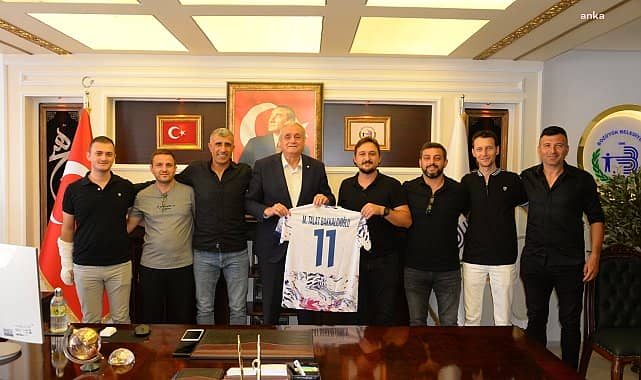 Bozüyükspor Futbol Kulübü Başkanı Beyhan Tolga Yılmaz ve yönetim kurulu üyeleri, Bozüyük Belediye Başkanı Mehmet Talat Bakkalcıoğlu’nu ziyaret etti. Başkan Bakkalcıoğlu’nu makamında ziyaret eden Kulüp Başkanı Beyhan Tolga Yılmaz ve yönetim kurulu üyeleri Başkan Bakkalcıoğlu ile bir süre görüşerek sohbet etti. Ziyarette Kulüp Başkanı Yılmaz ve yönetim kurulu üyeleri Bakkalcıoğlu’na ismine özel hazırlanan takım forması hediye etti. Bakkalcıoğlu da Kulüp Başkanı Beyhan Tolga Yılmaz’a ziyaretin anısına plaket takdim etti.