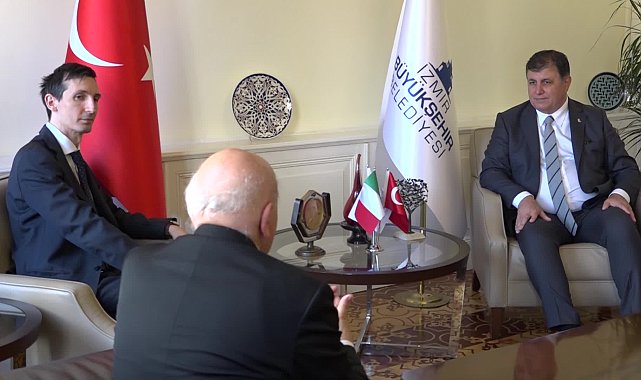 (İZMİR) - İtalya’nın İzmir Konsolosu Daniele Bianchi’yi misafir eden İzmir Büyükşehir Belediye Başkanı Cemil Tugay, bu yıl 30 Ağustos-9 Eylül 2024 tarihlerinde 93’üncü kez düzenlenecek İzmir Enternasyonal Fuarı’na İtalya’yı “partner ülke” olarak davet etti. Tugay, “İtalya şehirleri ile İzmir arasında sıkı bir iş birliği olsun istiyorum” dedi. İtalya’nın İzmir Konsolosu Daniele Bianchi, Başkan Tugay’ı makamında ziyaret etti. Başkan Tugay, İtalya ve İzmir arasında olası iş birlikleri hakkında Bianchi ile fikir alışverişinde bulundu. Bu yıl 30 Ağustos ile 9 Eylül günleri arasında düzenlenecek 93. İzmir Enternasyonal Fuarı'na ilişkin konuğuna bilgi veren Tugay, İtalya’yı fuara “partner ülke” olarak davet etti. Bianchi ise gerekli kurumlarla görüşeceğini belirtti. İzmir’de yatırımları olan İtalyan iş insanları ile tanışmak ve bir araya gelmek istediklerini belirten Tugay, “Bu yılki İzmir Enternasyonal Fuarı için biz İtalya’yı ‘partner ülke’ olarak davet etmek istiyoruz. Onun için de karşılıklı ziyaretler düşünüyoruz. Hazırlık yapacağız. Tarım, arkeoloji, tasarım ve kültürel konularda ortak projeler geliştirebiliriz. Akdeniz’in temizliği ve ekoloji konusunda da birlikte çalışabiliriz” dedi. Tugay, İtalyan yatırımcıları Bergama’da kurulan serbest bölgeye davet etti. İzmir ile iş birliklerine hazır olduklarını belirten Konsolos Daniele Bianchi ise “İtalya’yı ‘partner ülke’ olarak davet ettiğiniz için teşekkür ediyoruz. Bu konuda İzmir’deki ticaret ve sanayi odamız, aynı zamanda Dış Ticaret Bakanlığı’mız çatısı altındaki Ticaret Ofisi’mize de bu davetinizi ileteceğim. Onlardan da teknik bilgileri alıp size ileteceğim” diye konuştu.Bianchi, İzmir ile İtalya arasında Başkan Tugay’ın belirttiği tarım, arkeoloji, tasarım ve kültürel konularda iş birliği konusunda hemfikir olduklarını söyledi.