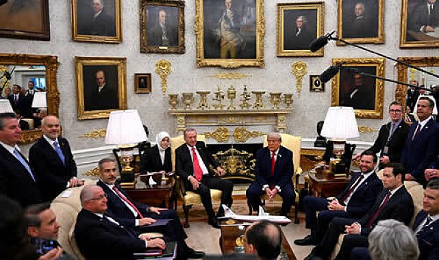 (ANKARA)-Cumhurbaşkanı Recep Tayyip Erdoğan ile ABD Başkanı Donald Trump'ın Beyaz Saray’daki görüşmesi sona erdi. Görüşme 2 saatten fazla sürdü.Cumhurbaşkanı Recep Tayyip Erdoğan, Beyaz Saray'da ABD Başkanı Donald Trump ile 6 yıl aradan sonra bir araya geldi. İki lider görüşme öncesi basın mensuplarının sorularını yanıtladı. Oval Ofis'te basına kapalı yaklaşık 2 saat 20 dakika süren Erdoğan-Trump zirvesi sona erdi. ABD Başkanı Donald Trump, Cumhurbaşkanı Erdoğan'ı kapıya kadar uğurladı. Trump, o sırada soru soran gazetecilere "Harika bir görüşmeydi" diye seslendi. Görüşmeye ilişkin resmi açıklama bekleniyor.