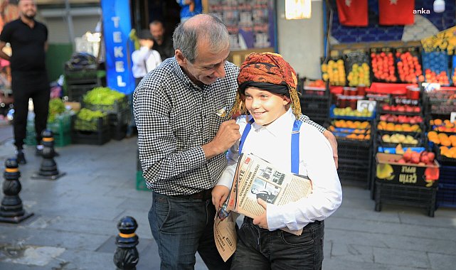 Dönem kıyafeti giyen çocukların, "Yazıyor, Cumhuriyetin İlanını Yazıyor" seslerinin yankılandığı Bayrampaşa Demirkapı Caddesi’nde hem duygusal hem de gururlandıran anlar yaşandı.