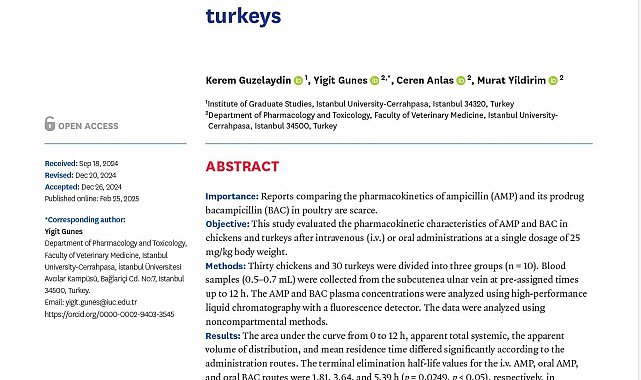 (İSTANBUL)- Bayrampaşa Belediyesi Veteriner İşleri Müdürü veteriner hekim Kerem Güzelaydın’ın doktora tezi, Güney Kore merkezli Journal of Veterinary Science isimli bilimsel dergide yayımlandı. Bu durumun kendisini çok mutlu ettiğini söyleyen Güzelaydın, “İlçem ve ülkem adına onur duydum” dedi.Doktorasını İstanbul Üniversitesi-Cerrahpaşa Veteriner Fakültesi Farmakoloji ve Toksikoloji Anabilim Dalı’nda tamamlayan Bayrampaşa Belediyesi Veteriner İşleri Müdürü Kerem Güzelaydın’ın doktora tezi bilimsel dergiye konu oldu. Güney Kore merkezli Journal of Veterinary Science isimli, Q2 kategorisinde yer alan bilimsel dergi Kerem Güzelaydın’ın doktora tezini sayfalarına taşıdı.Çalışmasıyla bilim dünyasının ve bilimsel dergilerin dikkatini çeken Kerem Güzelaydın, doktora tezinde oral biyoyararlanımı sınırlı olan ampisilini, ön ilacı olan bakampisilin ile farmakokinetik açıdan karşılaştırarak elde ettiği bulgularla bakampisilinin hem tavuklarda hem hindilerde ampisiline kıyasla daha yüksek biyoyararlanıma sahip olduğunu ortaya koydu.Güzelaydın, bu çalışmasıyla veteriner farmakoloji literatürüne önemli katkılar sunarken, alternatif antibiyotik uygulamaları açısından da bilimsel bir referans niteliği kazandı.